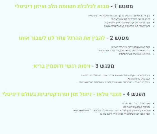 ✔ גישה לידע העדכני ביותר על שינוי הרגלים בעידן הדיגיטלי