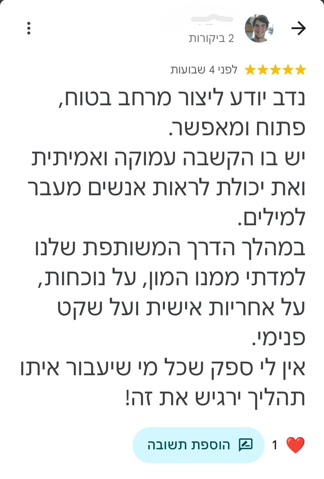 *כמובן שזה משתנה בהתאם לאדם, לעבר שלו ולכמה כל אחד בוחר ליישם את התרגלים והמסקנות מהמפגשים