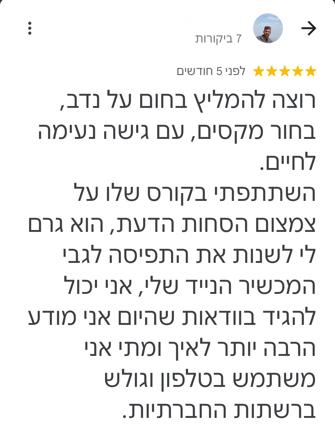 *אפשר להתאים את תדירות ואורך המפגשים בהתאם ללו"ז שלך